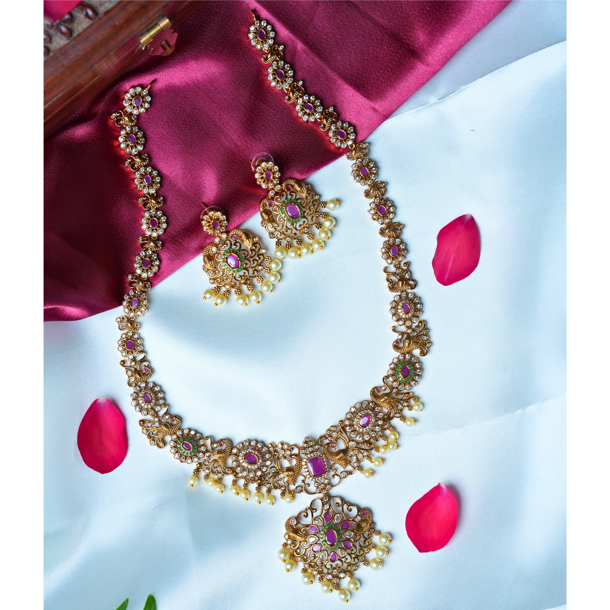 Material: White Pearls and Pink & Green Stones (Not Real Gold)
