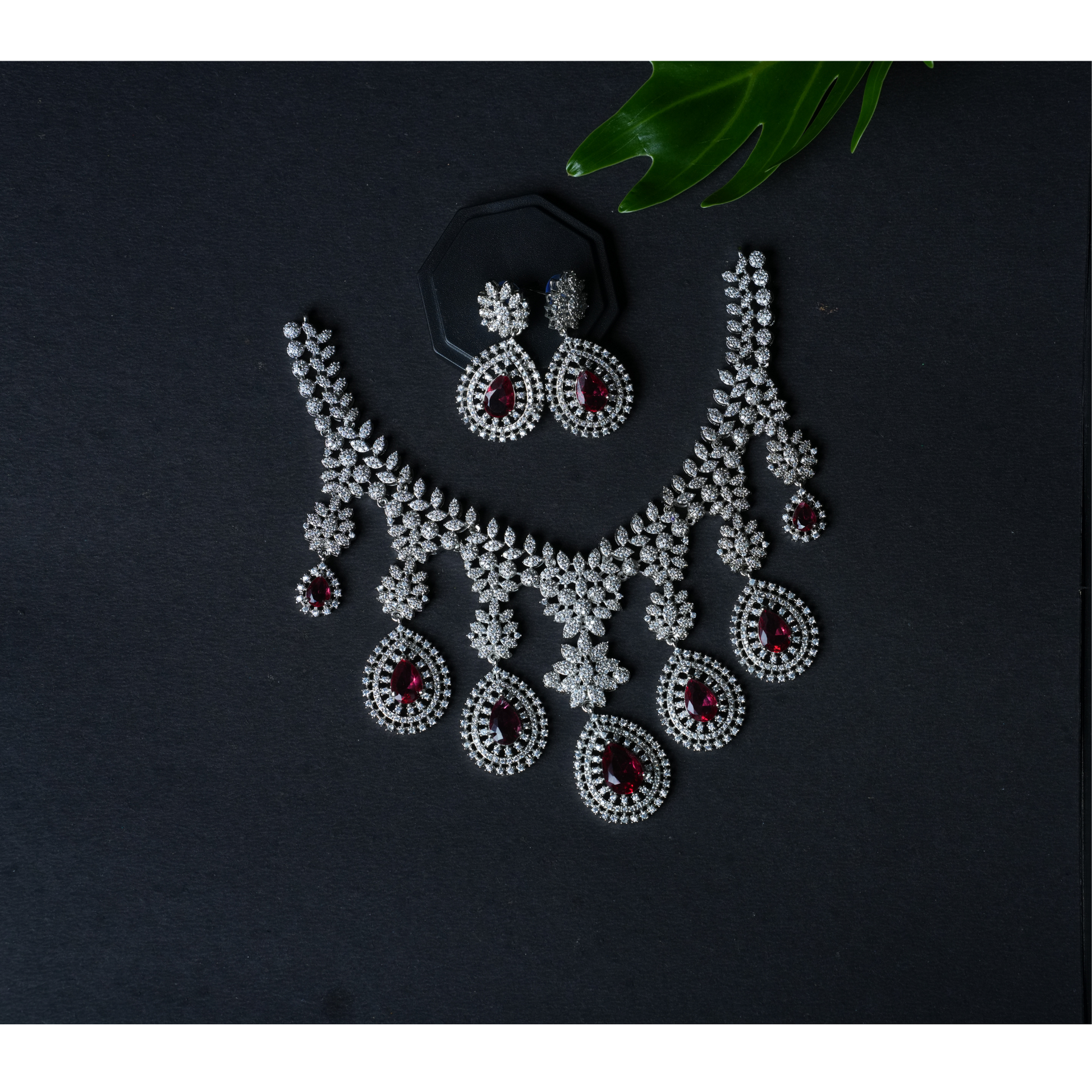 Radiant American Diamond Necklace & Earrings Set with Pink & White Stones