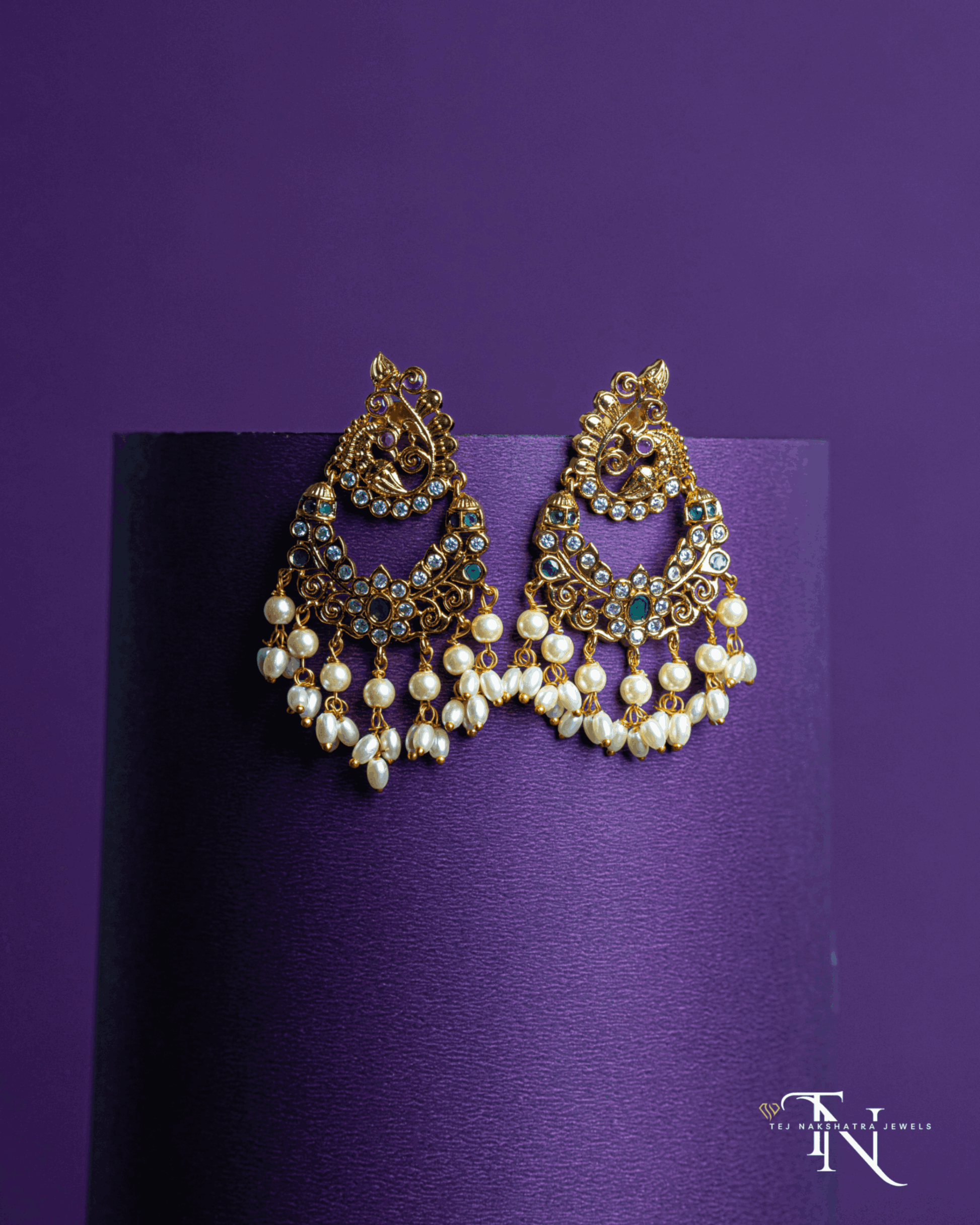 Add a touch of timeless elegance to your jewelry collection with our Regal Pearl Drop Earrings, a stunning blend of traditional design and modern beauty. Featuring lustrous pearls paired with carefully selected green, red, and white stones, these earrings radiate sophistication and charm. The gold-tone finish brings a luxurious appeal, making these earrings the perfect accessory for weddings, festivals, or any occasion where you want to shine.