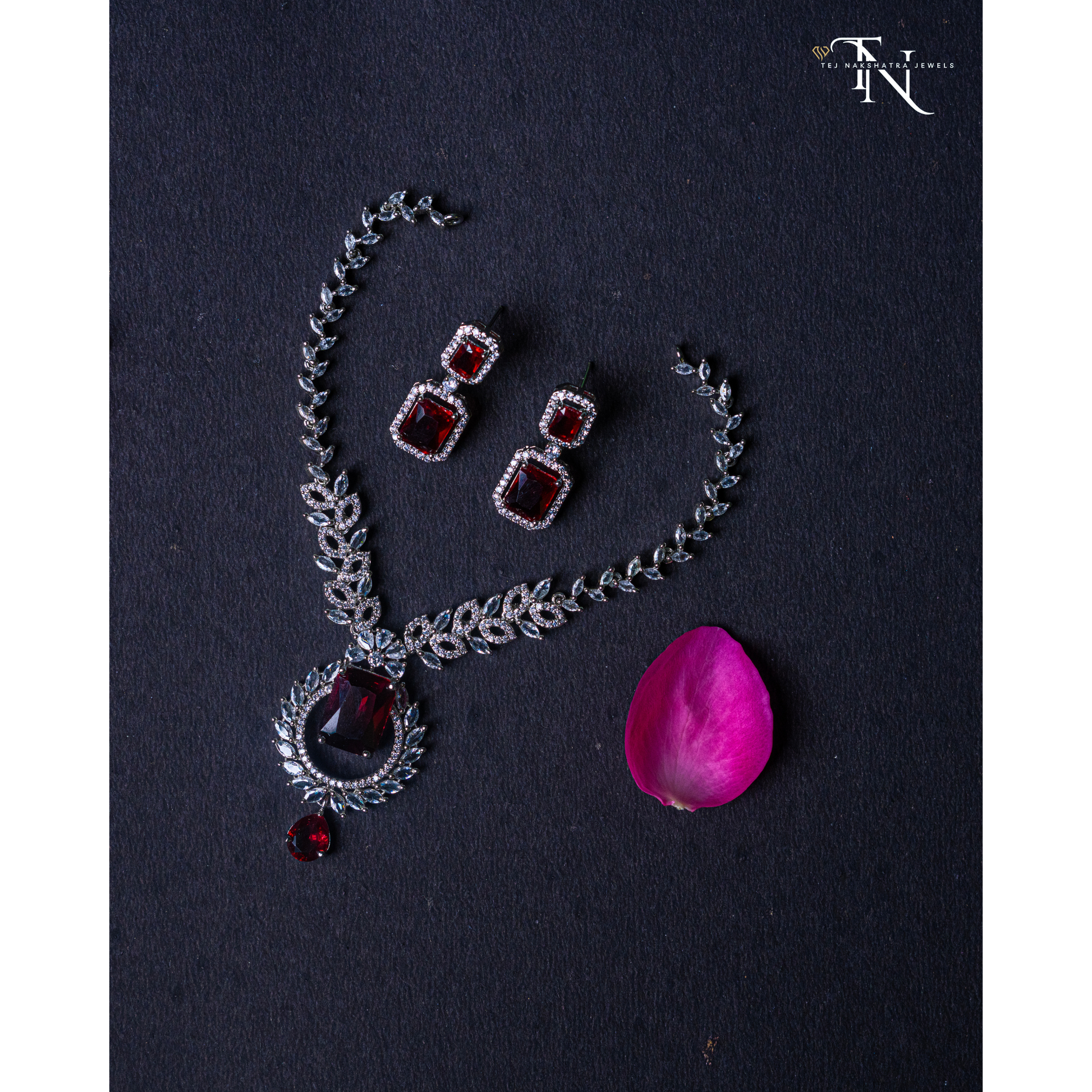 Make a bold statement with this Stunning American Diamond Necklace, beautifully designed with a mix of white American diamonds and striking red stones. This eye-catching piece radiates elegance and charm, offering the sparkle of real diamonds and the vibrancy of rich red hues—without the use of real gold or diamonds. Whether you're dressing up for a special event, wedding, or a festive occasion, this necklace adds an instant touch of glamour and sophistication to your look. Its versatile design complements both traditional and modern styles, making it a perfect addition to your jewelry collection.